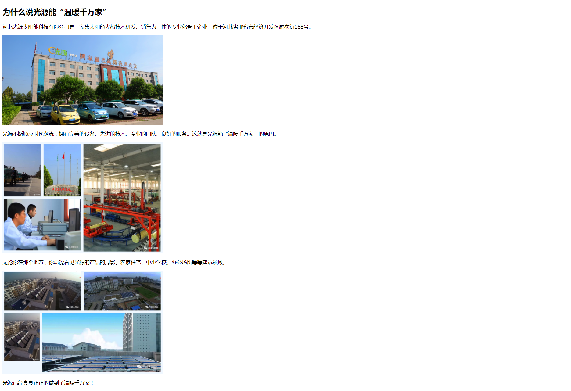 Copyright(C)2021 河北光源太阳能 E-mail: hbguangyuan@163.com 地址: 邢台经济开发区王快镇北屋村永安路2199号 关于光源 | 公司动态 | 联系我们 | 法律声明