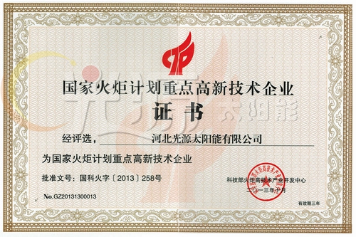 国家火炬计划重点高新技术企业证书