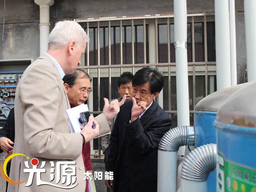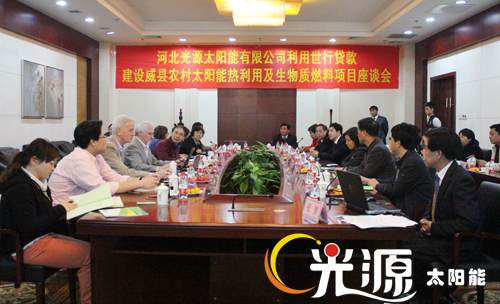 识别团一行在河北省发改委外资处副处长史海峰、河北省财政厅涉外处副处长何贵满、河北省新能源技术推广站副主任王香雪及市直有关部门负责人的陪同下实地考察了光源公司威县农村太阳能热利用及生物质燃料项目。通过考察了解了太阳能采暖、太阳能热开水系统的工作原理、项目周边环境及使用情况,并对项目的具体情况展开了座谈讨论。光源公司副总经理邵东坤就光源公司的基本概况、经营情况以及世行贷款项目概况向识别团进行了汇报,识别团针对项目的建设内容、开发潜力、市场风险等问题进行了提问和讨论。