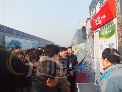 12月7日上午,光源公司邀请经销商朋友到厂区参观并合影留念。光源公司在厂区的特定位置展示了光源的产品,尤其是新品的展示更安排了技术人员现场演示与讲解,广大经销商朋友对光源新品产生了浓厚的兴趣,纷纷驻足光看,聆听讲解。7日下午,光源太阳能年会举行订货会,活动现场气氛热烈,经销商朋友争先恐后的签订购货协议,订货量与去年持平。