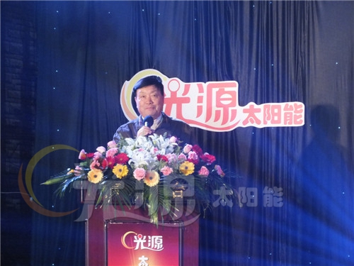 首先,12月6日上午9:30,光源年会隆重开幕。在年会上,中国太阳能热利用产业联盟副理事长、中国太阳能热利用产业协会副理事长、河北光源太阳能科技有限公司董事长李成彬致辞。他代表光源公司对各位领导、专家、经销商朋友的到来表示热烈欢迎和衷心感谢,对光源2014年取得的成绩和2015年发展方向进行了总结和展望。李成彬指出,2014年是光源发展史上不平凡的一年,在国内经济增速放缓的大背景下,太阳能光热行业也受到极大影响。但光源勇敢拼搏、坚定信念,以市场为导向,以销售为龙头,产量虽然相比去年有所下滑,然而,我们依然对太阳能光热行业的发展前景充满信心,相信太阳能光热的春天一定还会到来。行业领导罗振涛、霍志臣、张晓黎、贾铁鹰、杨桂元先后讲话。在讲话中,领导们肯定了光源跨越发展、科技创新取得的喜人成绩,肯定了光源在全国同行业中的地位和作用,对光源未来发展提出了指导性意见。光源公司总经理刘迎波在讲话中详细分析了光源公司面对的市场形势,他说,光源公司在今后的发展道路上要审时度势,及时调整经营战略和营销政策,做精做细终端市场,和广大经销商一起,打造符合光源特点的企业发展之路。
