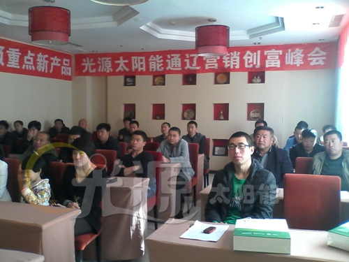 光源太阳能2014年通辽营销创富峰会于上午8时在通辽市蒙汉双语标注的人禾商务酒店准时召开!
