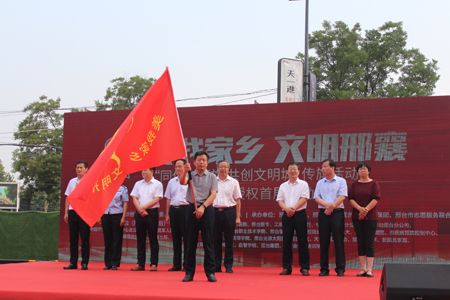 2019617日上午,我公司与邢台市各行业的30家代表单位共同参加了,由市宣传部、文明办举办的“同传一面旗 共创文明城”传旗活动暨手绘邢台授权首展启动仪式。