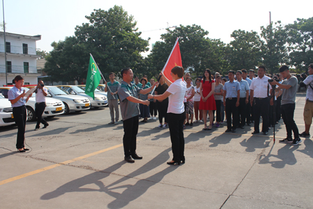 将“同传一面旗 共创文明城”主旗帜传递给九州驾校集团。