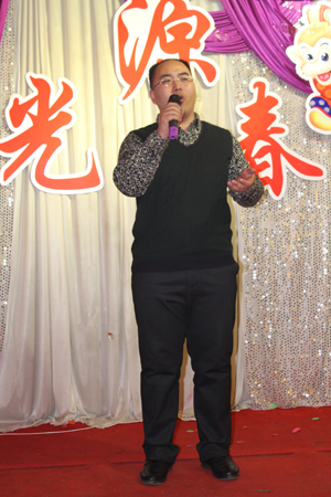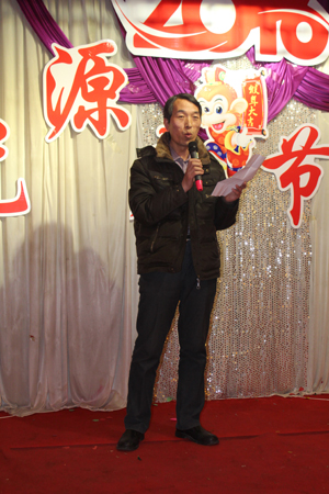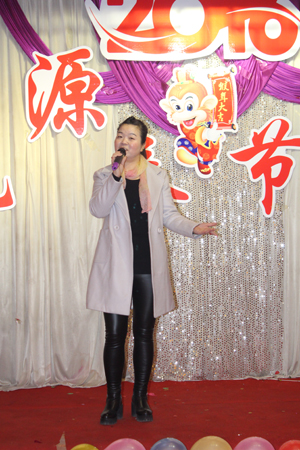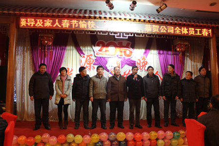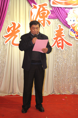 晚会开始前,董事长李成彬首先致辞。在致辞中,李成彬向全体员工恭贺新春,对2015年工作进行了回顾,对2016年工作进行了展望和描绘。接着,公司领导李成彬、刘迎波、邵东坤、李友民一起上台向大家拜年。公司各部门经理一起上台给大家拜年。恭祝大家新年快乐,猴年大吉,阖家欢乐,万事如意。