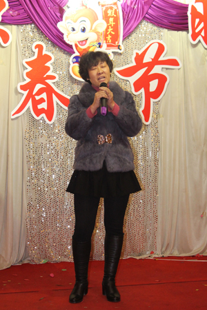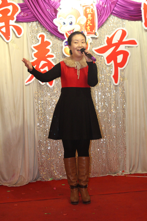 登台表演的是真空管车间高合英,她给大家带来的歌曲是《欢乐中国年》。本次晚会共有歌曲、戏剧、武术等19个节目一展风采,演出中掌声不断,气氛热烈。叫好者不绝于耳,更有职工亲友团的节目演出令人振奋不已。充分显示了光源一家亲的热烈气氛。