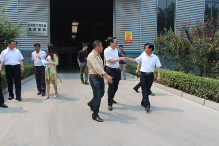 619日上午,由深圳招商引资实战平台执委会主任张希波率领的深圳客商考察团一行9人来光源太阳能公司参观考察,邢台开发区党工委副书记、管委会副主任王宪明、光源公司董事长李成彬陪同考察。