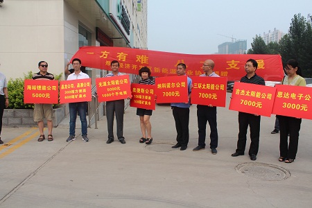 洪灾无情人有情。地处邢台经济开发区的光源太阳能科技有限公司一方面做好自我防汛抗汛工作,一方面向邢台经济开发区灾民捐款捐物,帮助受灾群众渡过难关。