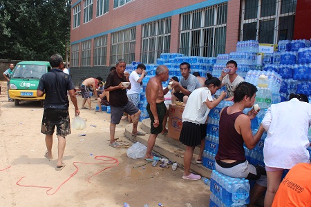 邢台经济开发区东汪镇景家屯村,是邢台7.19洪水侵袭的重点村之一。从719日晚断电断水至今,水电供应因施工难度大,至今仍未恢复。村民一日三餐,仅以矿泉水、方便面(干吃)充饥。